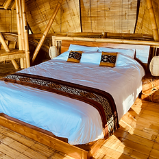 Located on the first floor of the Tower Bamboo Villa, this bamboo room offers beautiful sea views in a peaceful setting. Naturally crafted from bamboo, the room features a comfortable bed and access to shared shower and toilet facilities. A calm and simple space to relax while enjoying the ocean scenery.
