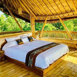Located on the first floor of the Tower Bamboo Villa, this bamboo room offers beautiful sea views in a peaceful setting. Naturally crafted from bamboo, the room features a comfortable bed and access to shared shower and toilet facilities. A calm and simple space to relax while enjoying the ocean scenery.